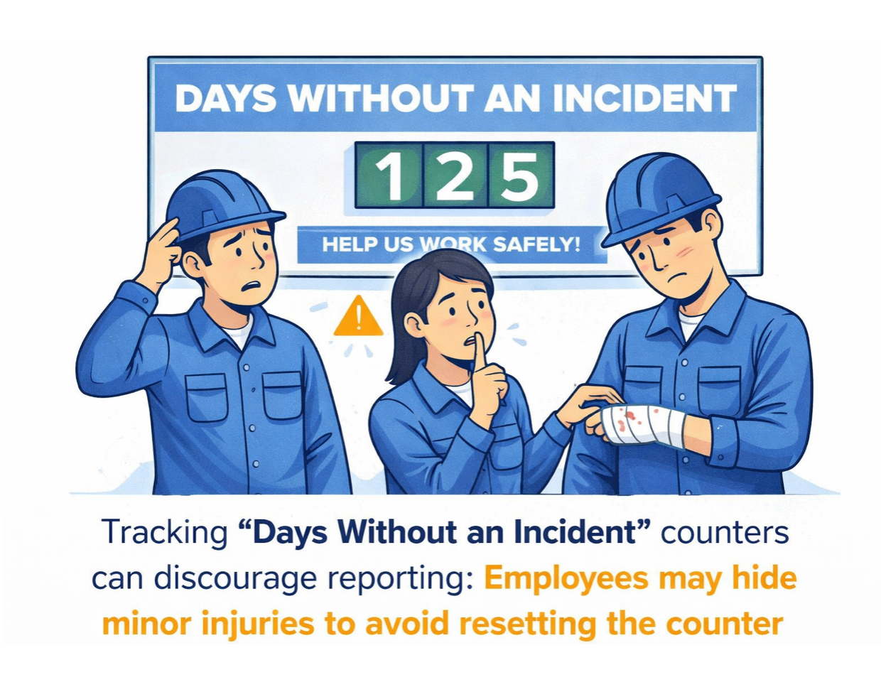 Take “days without an incident” as an example. While it appears positive, it can discourage reporting. Employees may choose not to report minor injuries to avoid resetting the counter.