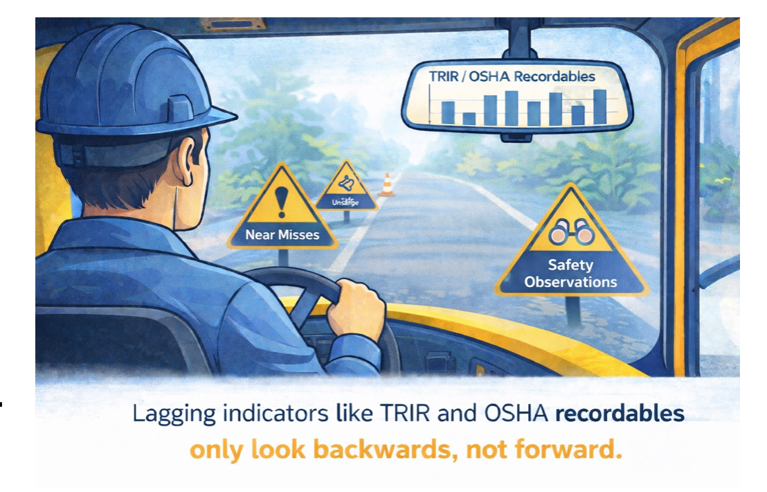 Many organizations rely heavily on lagging indicators such as TRIR and OSHA recordables. These metrics are important—but they only tell you what has already happened.
