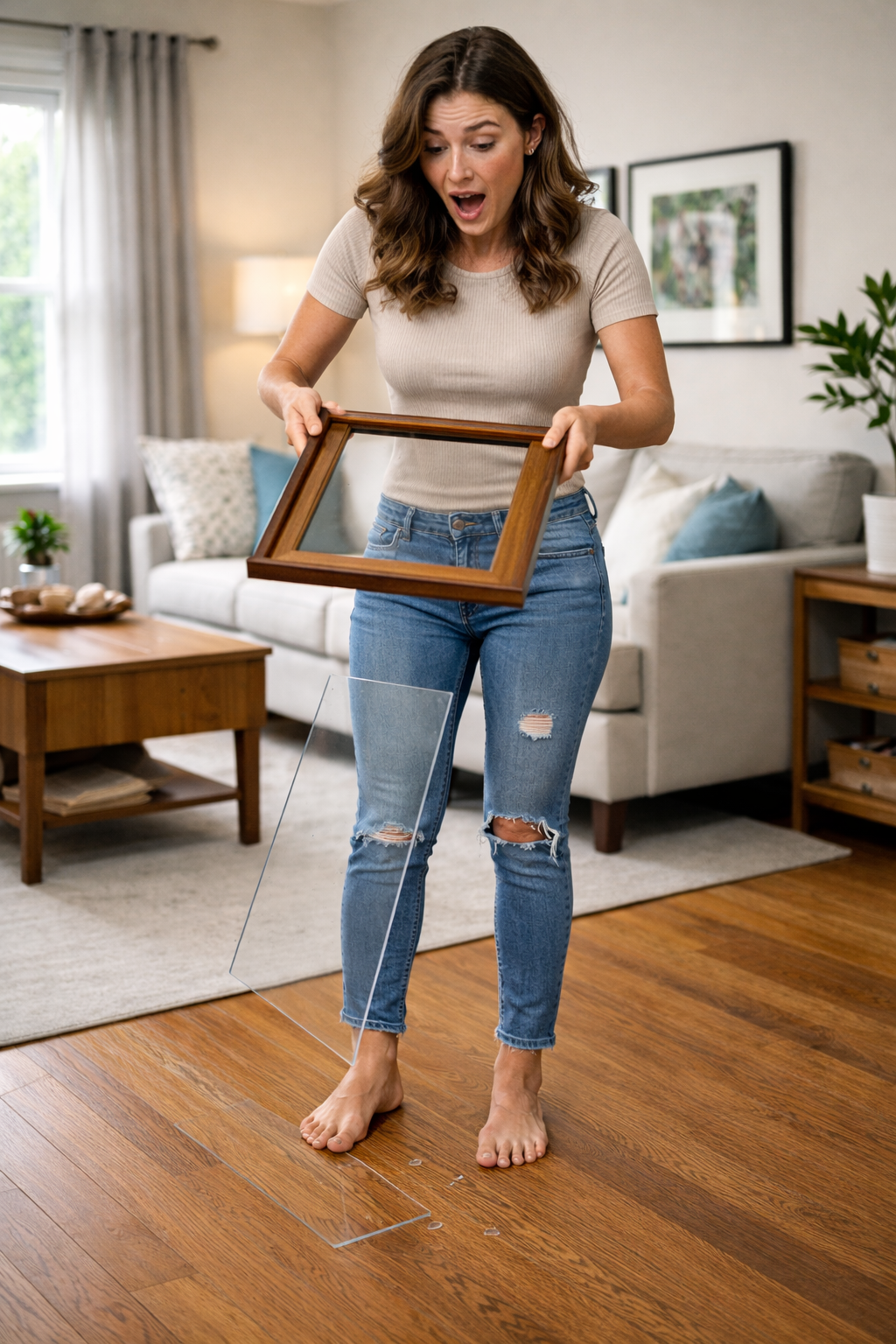Looking back, there were a few things I didn’t think about in that moment. I was barefoot. I didn’t consider the possibility that the frame might break. I didn’t think about what could happen if the glass slipped or fell.